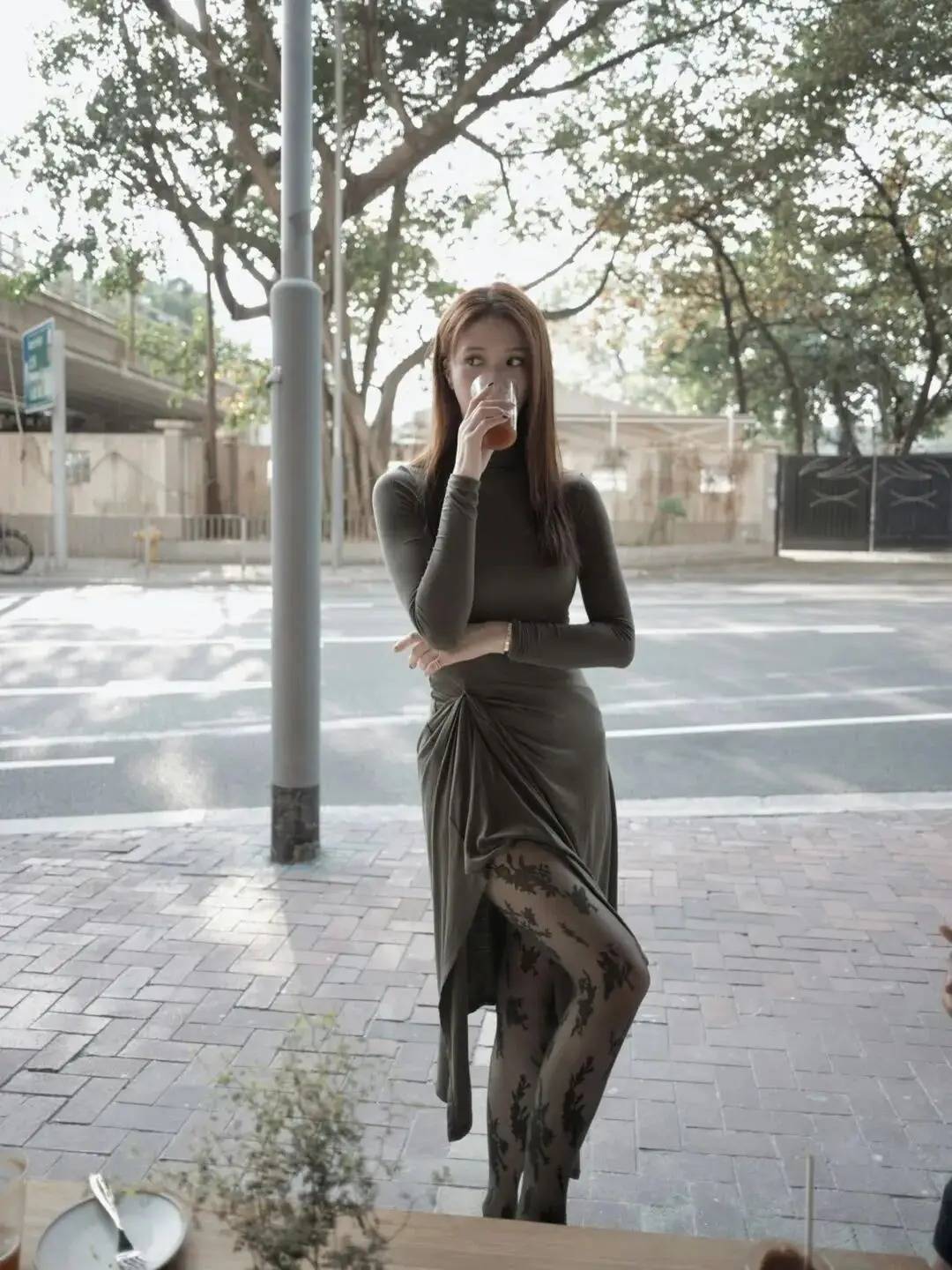 细看这组引发讨论的美照,陈晓华把纯欲风拿捏到了极致。照片中的她正与友人在咖啡店里惬意喝咖啡。拥有高挑身材的她当天悉心打扮,穿上一件质感极佳的墨绿色连身短裙。